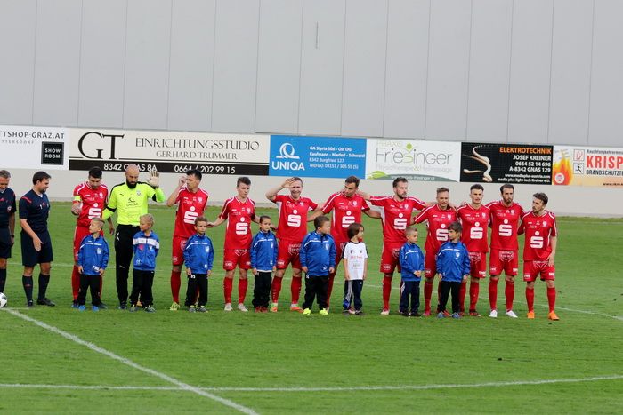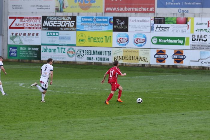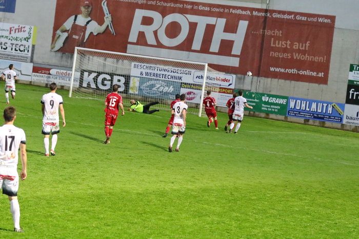Der Gnaser Rene Obendrauf köpft eine Freistoßflanke von Matthias Schadler knapp links am Tor von Torhüter Tomislav Miljkovic vorbei (3.). Im Gegenzug verzog Heiko Rieger knapp (4.). Ein Schuss von Daniel Luttenberger-Haas wurde zur Ecke abgefälscht (8.). Nach dem abgespielten Eckball versuchte David Fink den Abschluss, Miljkovic war auf dem Posten. Gnas-Goalie Roth wirft sich erfolgreich vor die Beine von David Kitting-Muhr, der über rechts in den Strafraum eingedrungen war (10.). Distanzschüsse von Jure Spiler und Rene Obendrauf zogen über die Querlatte ins Torout (13.u.14.). Goalie Alex Roth konnte einen Freistoß von Zan Horvat abwehren (18.). Heiko Wohlmuth beförderte das Leder übers Tor von Miljkovic (21.).