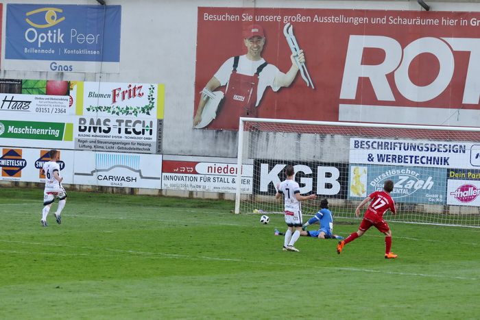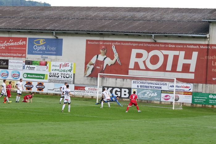 Aus einem schnellen Konter fiel in der 23. Minute durch Heiko Rieger, der der Gnaser Abwehr nach Pass von Markus Gschiel auf und davon lief und mit einem Flachschuss ins linke Eck Torhüter Alexander Roth das Nachsehen gab, das 1:0 für die Gäste.