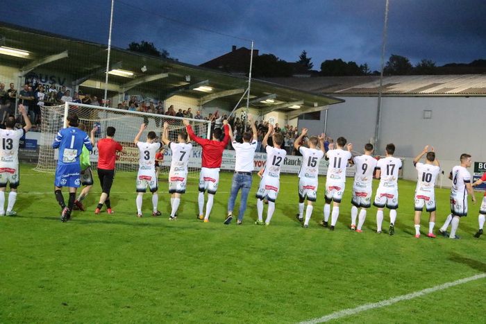 Die Gnaser bedanken sich bei den Fans auf der Stehplatztribüne.