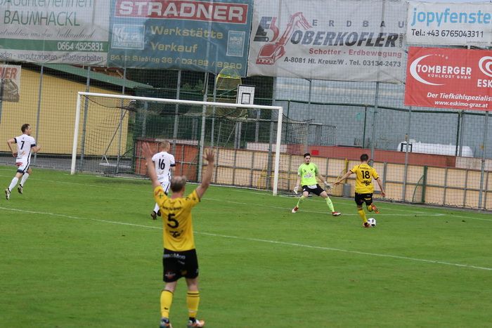 Den Gnasern gelang in der 53. Minute der Anschlusstreffer. Ein nach Pass von Matthias Schadler an der rechten Strafraumgrenze von David Fink abgegebener Schuss wurde etwas abgefälscht und landete zum 1:2 im langen Eck.