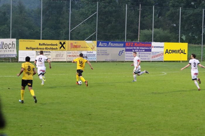 Im letzten Auswärtsspiel mussten die Gnaser beim Angstgegner Hlg. Kreuz/W antreten. In den bisher sieben Duellen in der Landesliga gab es vier Siege der Hlg.Kreuzer, zwei Remis und nur einen Sieg der Gnaser. Für die Gnaser, die 48 Stunden zuvor das Nachtragsspiel gegen Bad Radkersburg bestreiten mussten (2:2), eine schwere Hürde. Bei den Gästen aus Gnas fehlten Klenner, Strohmaier, Wagist und O. Fink. Zudem war Heiko Wohlmuth gesperrt. Maxi Opferkuch und Alex Roth nahmen auf der Ersatzbank Platz. Dafür stand Albert Fink beim Meisterschaftsdebüt in der Ersten Mannschaft gleich in der Startelf, auch Elias Niederl spielte von Beginn weg. Ralf Pripfl hütete diesmal das Tor.