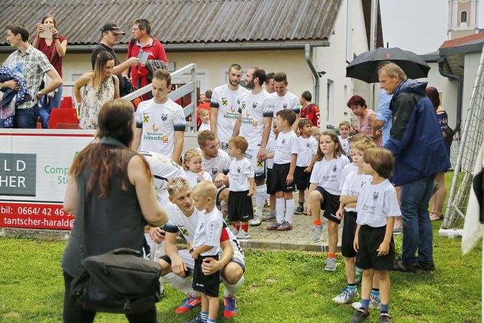 Gnaser Nachwuchsspieler bereiten sich auf den Einmarsch mit den Spielern vor.
