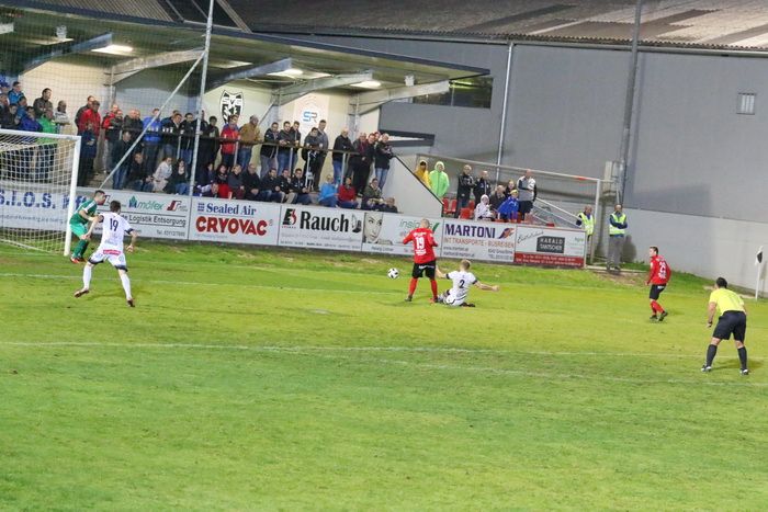 Nach Vorstoß über die lnke Seite verfehlt Raphael Kniewallner (nicht am Bild) das Tor von Stoiser (23.).