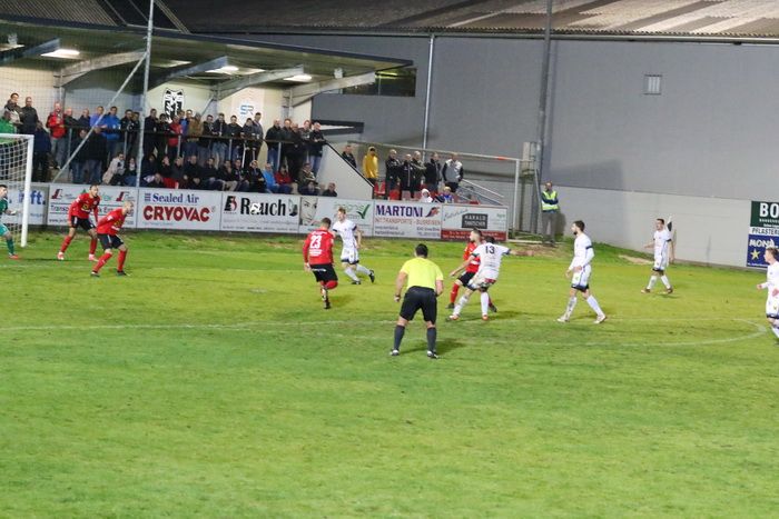 Rene Obendrauf (am Boden) übernimmt einen Eckball direkt, Stoiser wehrt ab (82.).
