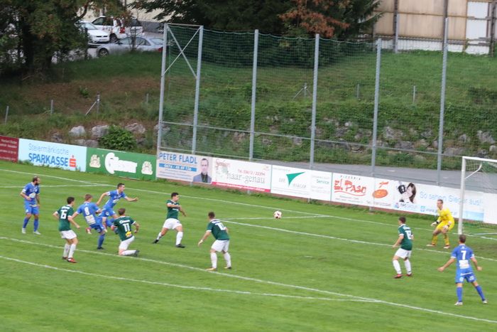 Und die Freude währte nur kurz. Nach einem der seltenen Vorstöße der Hausherren flankte Luca Pistrich von der linken Seite in den Strafraum, Andre Lesch ging zu Boden, SR Kudic zeigte auf den Elferpunkt. Der Strafstoß wurde von Flamur Muleci sicher zum 1:1-Ausgleich verwandelt. In der 38. Minute traf Philipp Scheucher mit sattem Schuss die Querlatte des gegnerischen Tores.