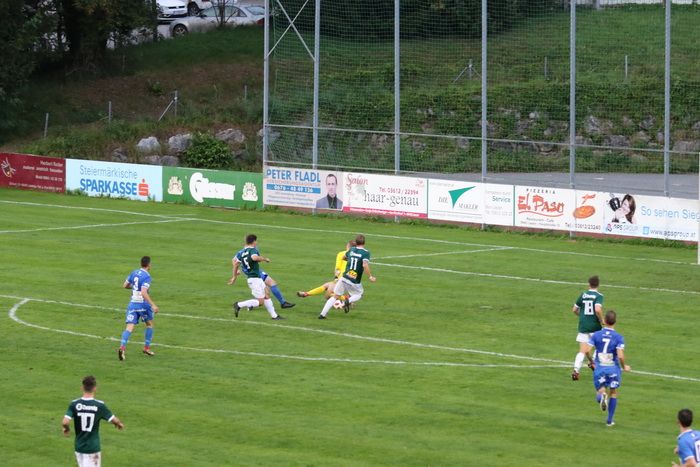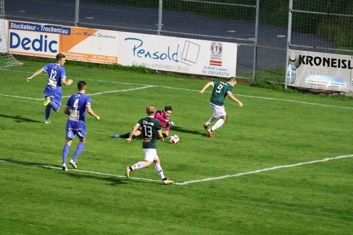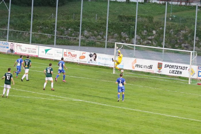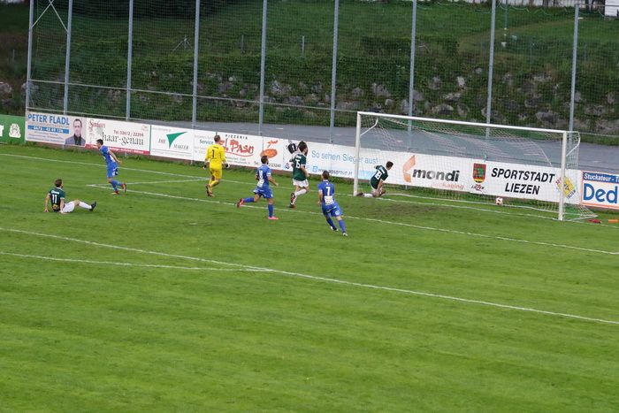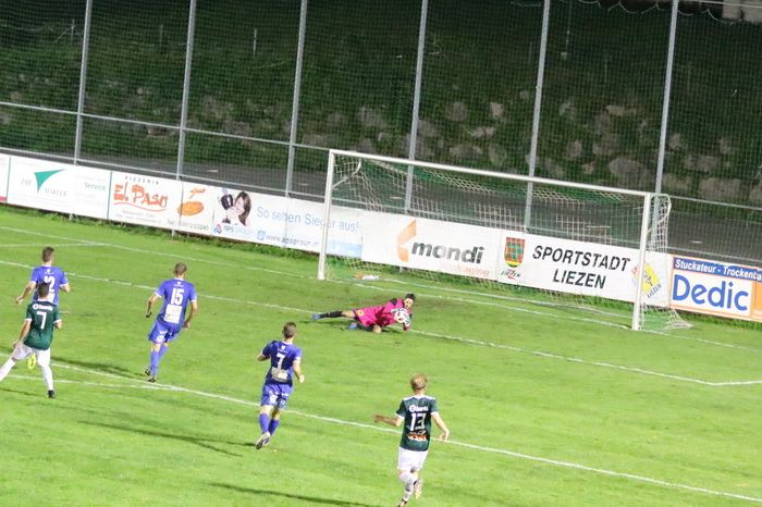 Nach einem Sololauf des jungen Philipp Scheucher konnte Liezen-Torhüter Daniel Bartosch das Leder über die Querlatte drehen (14.). Etwas später der nächste Auftritt des 16-jährigen Talentes. Diesmal bewahrte der rechte Pfosten die Heimischen vor einem Rückstand (18.). Und noch einmal tauchte Scheucher nach schönem Zuspiel vor Gaolie Bartosch auf, diesmal scheiterte er am gegnerischen Tormann.