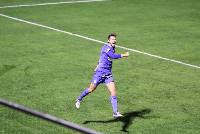 ...der Torschütze jubelt über sein Tor.
