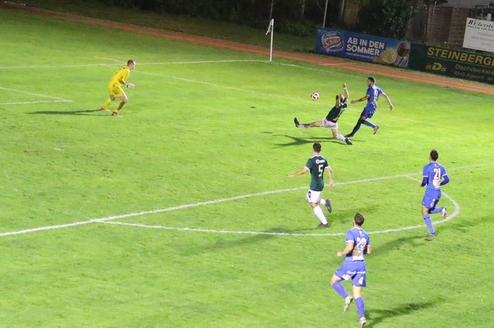 Nach einem Eckball hatte der Gnaser Mittelfeldspieler David Fink mit einem Schuss aus dem Hinterhalt Pech, die Stange verhinderte den erlösenden zweiten Treffer.