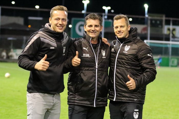 Haben derzeit allen Grund zur Freude: Gnas-Trainer Marko Kovacevic (links) und die beiden Co-Trainer, Peter Jud und Mario Groznik.