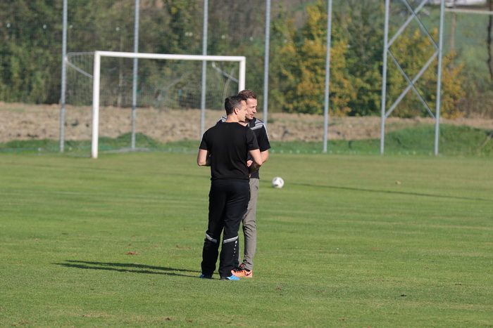 Gnas-Trainer Marko Kovacevic bespricht sich mit seinem Co- Mario Groznik.