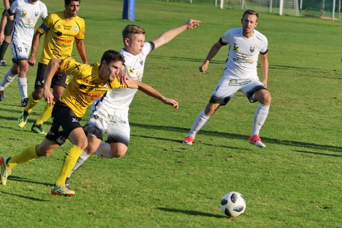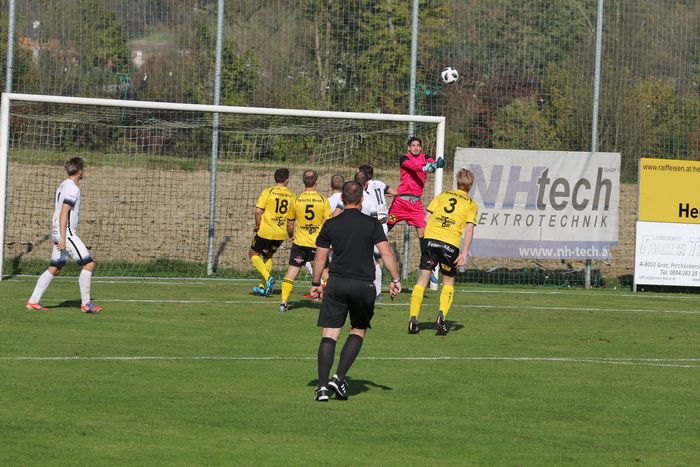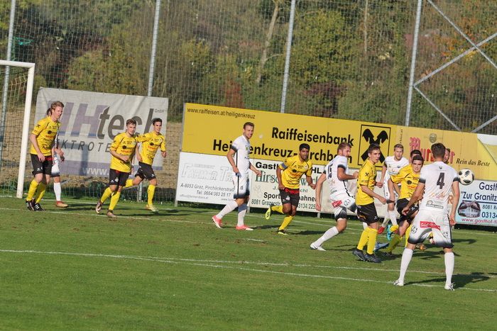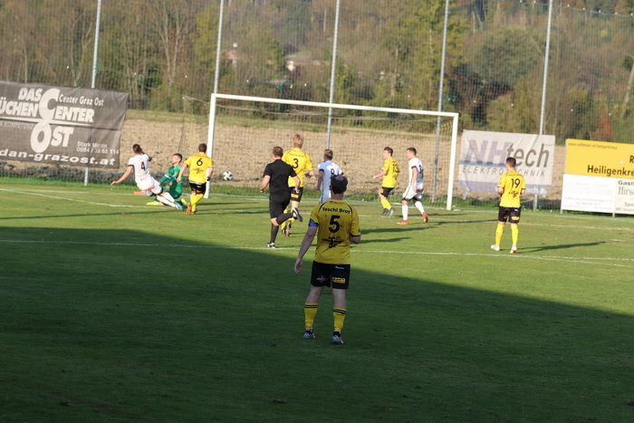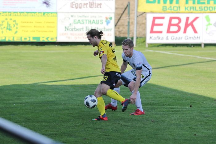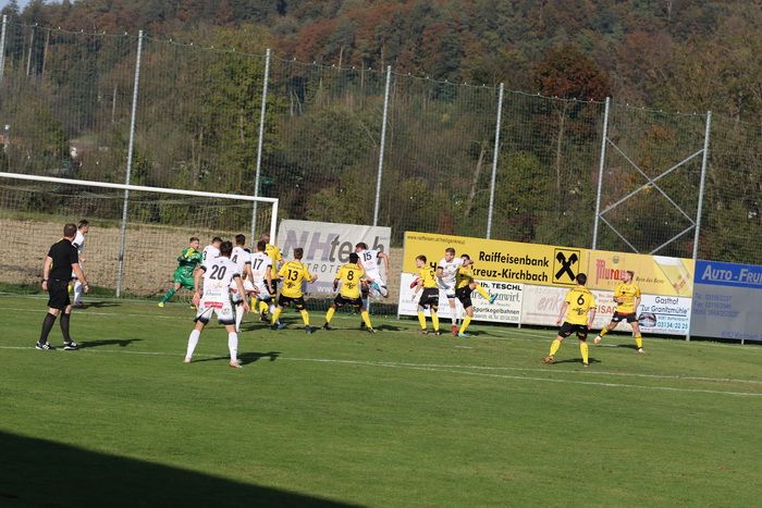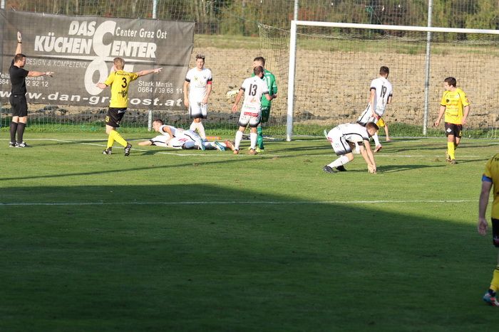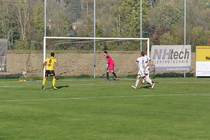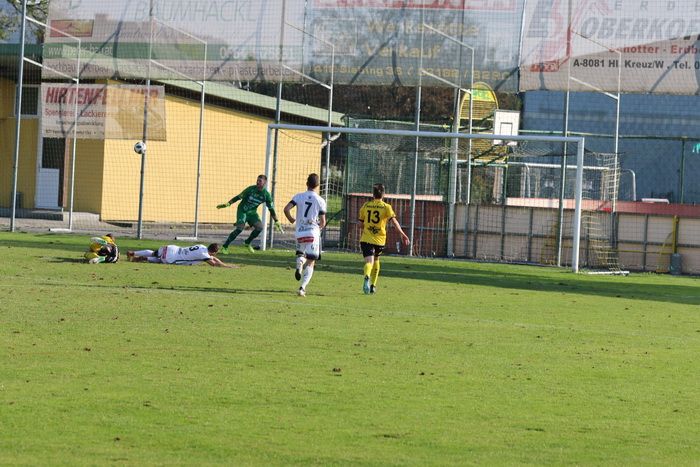 Trotz Unterzahl gelang den Gastgebern in der 42. Minute durch Paul Jury der Führungstreffer. Eine Flanke von Ralph Johann Smounig verwertete der Goalgetter per Kopf zum 1:0. Pausenstand 1:0.