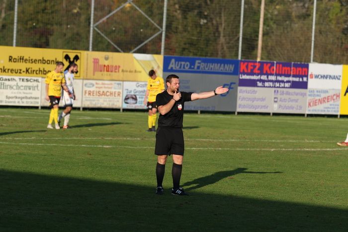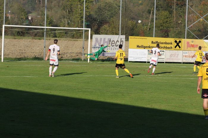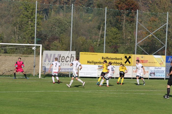 Nach Angriff der Gnaser über die linke Seite bediente Rene Wagist den in Stellung gelaufenen Raphael Kniewallner und Daniel Resch zog die Notbremse im Strafraum. Rote Karte für Resch und Elfmeter für Gnas. Hlg.Kreuz/W-Torhüter Philipp Fraiss erriet die Ecke und konnte den Strafstoß von Kapitän Daniel Luttenberger-Haas abwehren (32.). Die Heimischen waren von nun an nur mehr zu Zehnt auf dem Platz.