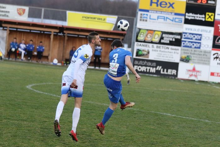 Kopfballduell zwischen Marko Balazic und Raphael Kniewallner.