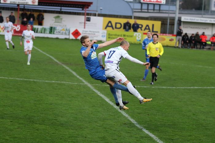 ...David Friedl (links) bringt das Leder vor das Tor...