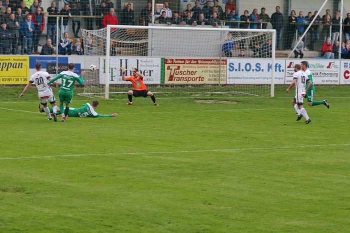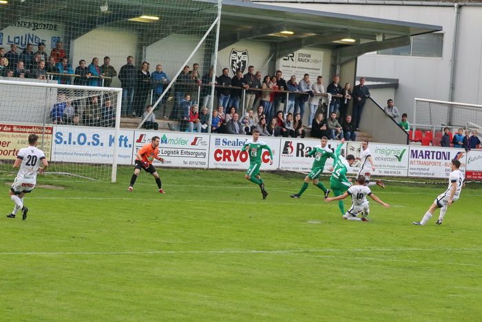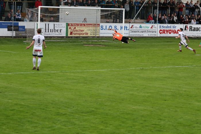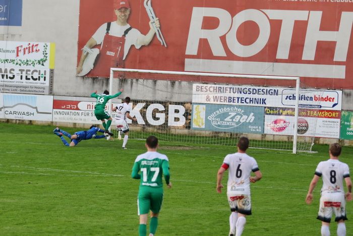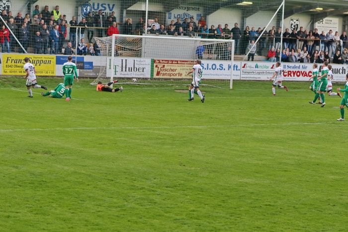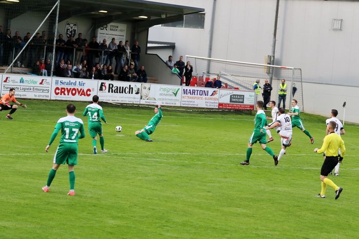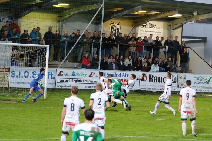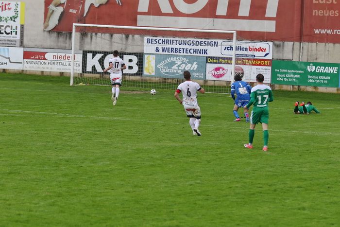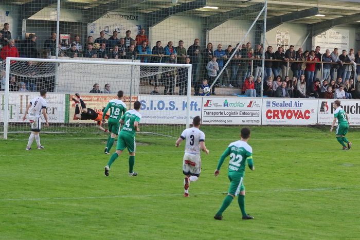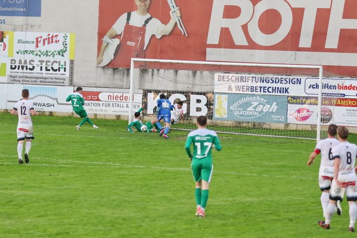 ...Matthias Pagger (Nr. 7) ist abermals zur Stelle und befördert das Leder ins Netz.