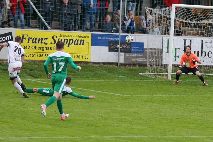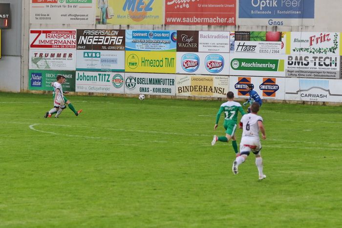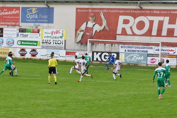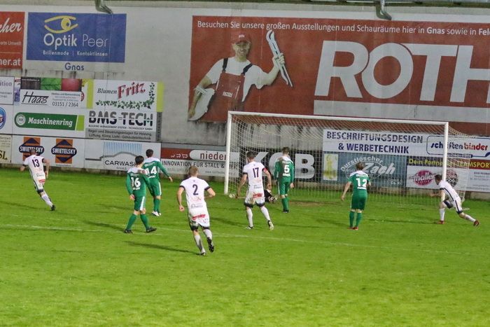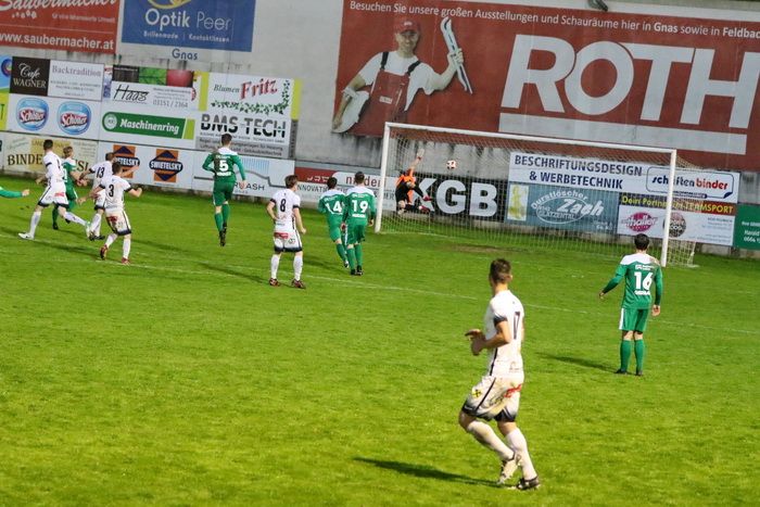 Gnas-Mittelfeldspieler Maxi Opferkuch brachte die Gnaser in der 16. Minute 1:0 in Führung. Nach Querpass auf Maxi Opferkuch setzte sich der Mittelfeldspieler auf der linken Seite durch und knallte das Latte unter die Querlatte.