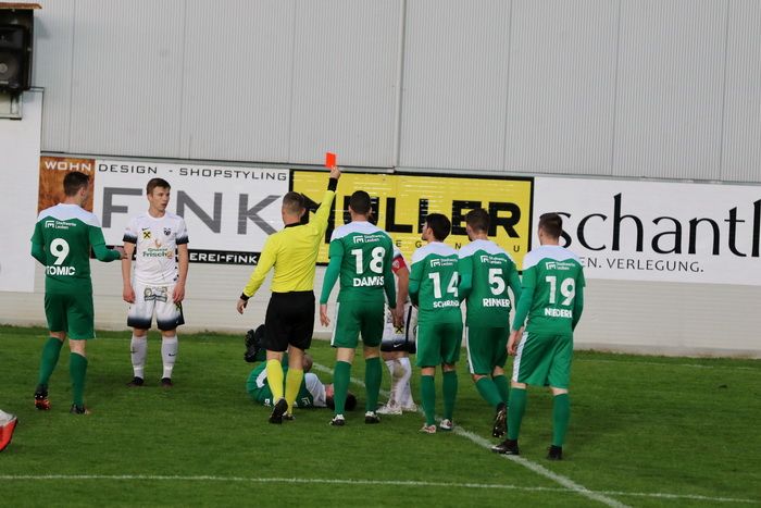 Gnas-Kapitän Matthias Schadler wurde nach einem Foul an DSV-Kapitän Martin Petkov in der 60. Minute mit der Roten Karte des Feldes verwiesen.