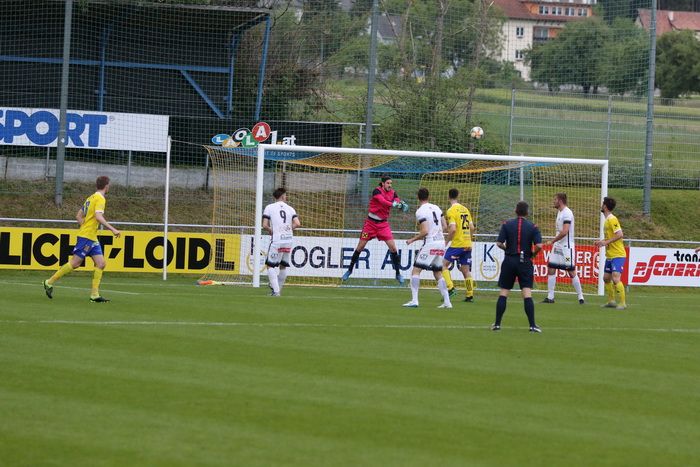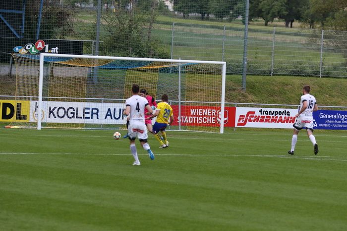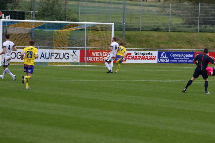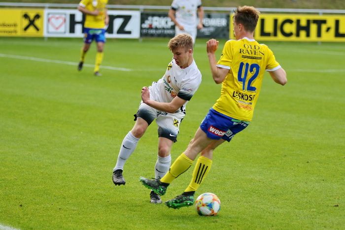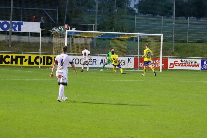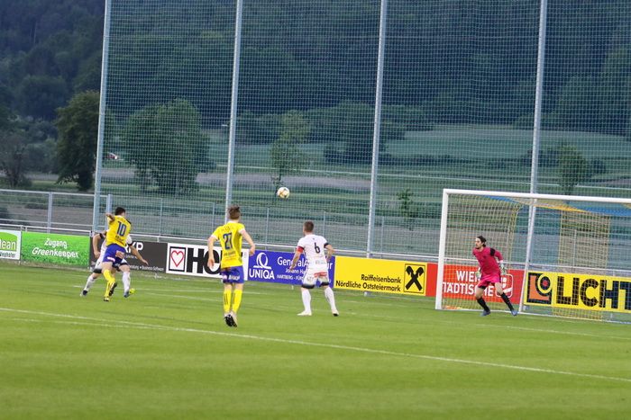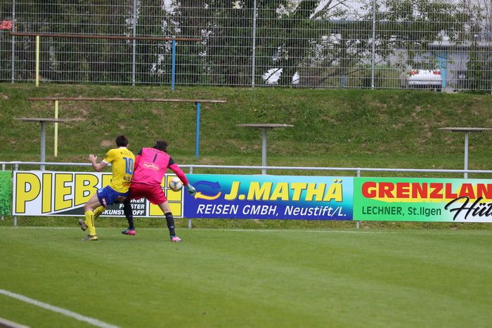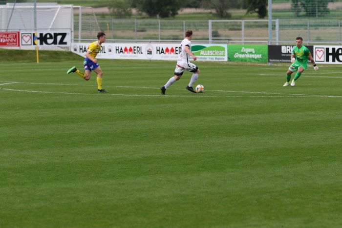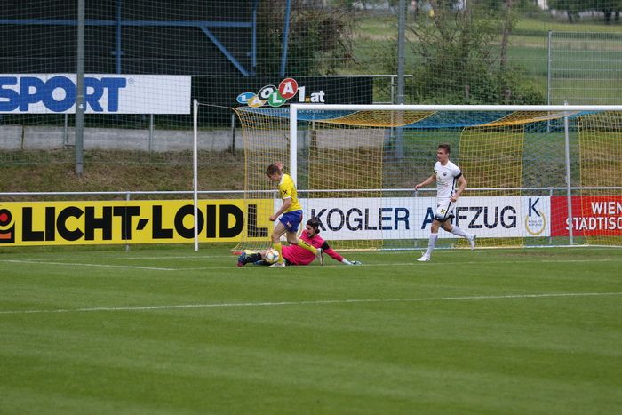 Philipp Scheucher läuft nach Wohlmuth-Steilpass aufs gegnerische Tor, umspielt Torhüter Lucas Wabnig...