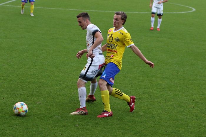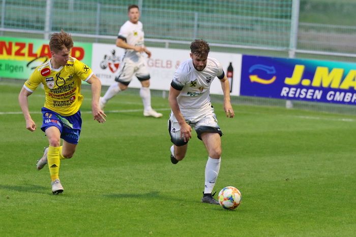 Maxi Opferkuch (rechts) im Laufduell mit Florian Prohart, dem Torschützen.