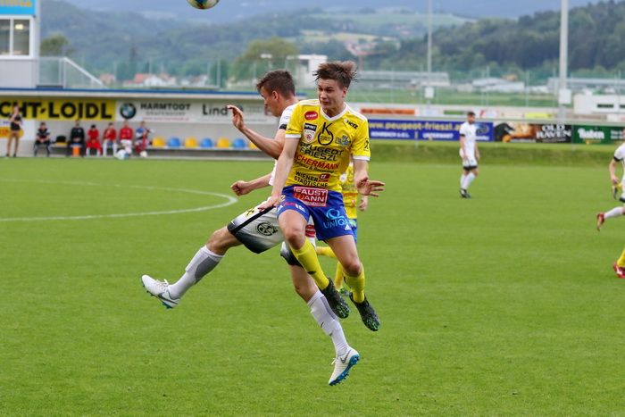 Ein Luftduell mit Philipp Scheucher (rechts).