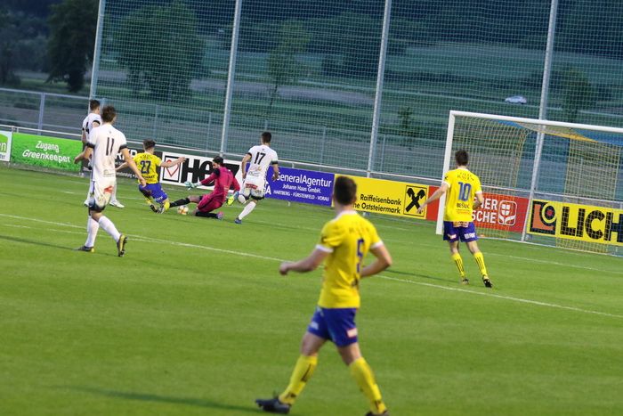 Die Hausherren setzten die Gnaser von Beginn an unter Druck und Florian Prohart brachte seine Mannschaft in der 7. Minute nach schönem Lochpass mit 1:0 in Führung. Gnas-Torhüter Roth konnte sich in der Folge einige Male in brenzligen Situationen auszeichnen und eine höhere Führung der Lafnitzer verhindern. Erst nach rund einer halben Stunde fanden die Gnaser allmählich ins Spiel und in der 42. Minute gelang Philipp Scheucher nach Steilpass von Heiko Wohlmuth der Ausgleich. Scheucher umkurvte Torhüter Lucas Wabnig und stellte aus spitzem Winkel auf 1:1.