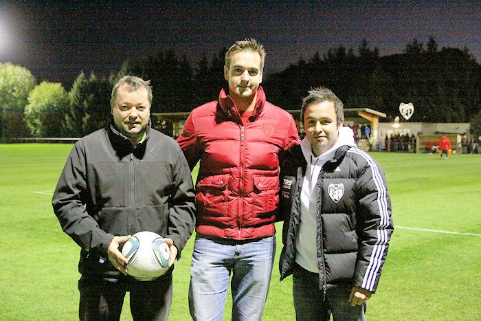 Match- und Matchballsponsor war die Fa. Kaminbau Baumgartner. Karl Baumgartner(links) mit Andy Gsellmann und Marc Trummer.