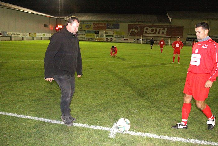 Karl Baumgartner nimmt den Ehrenanstoß vor.
