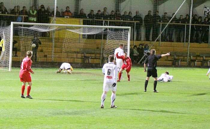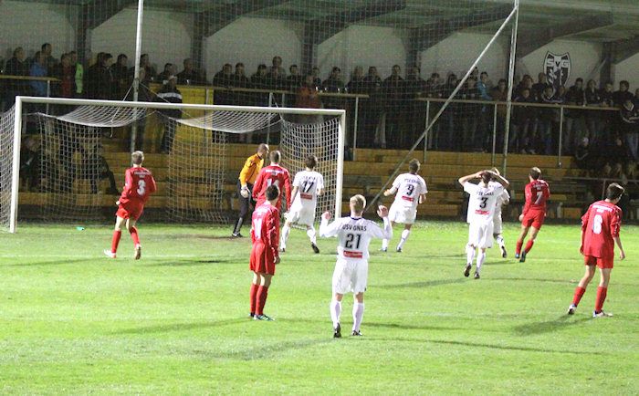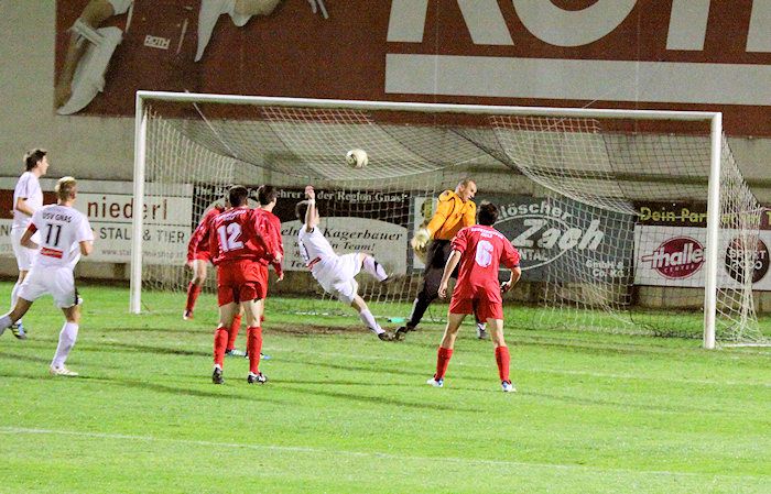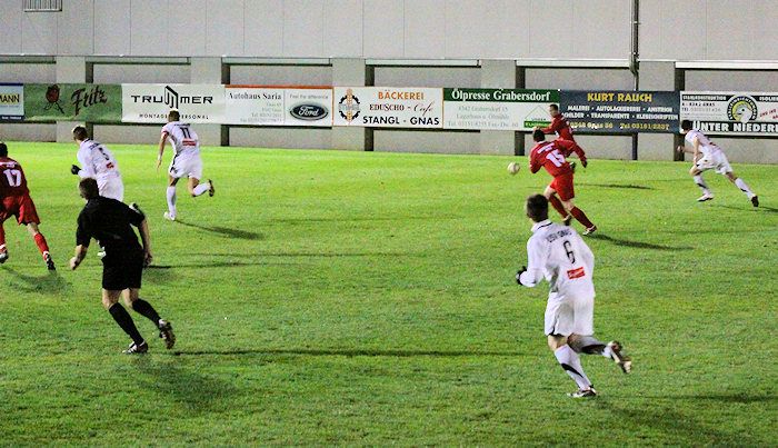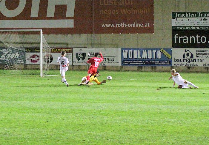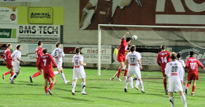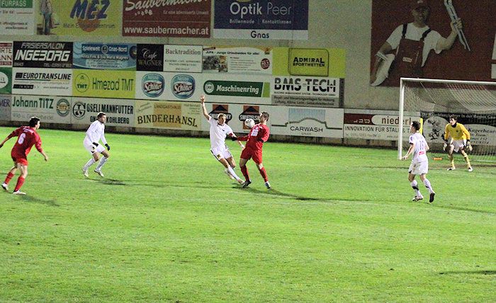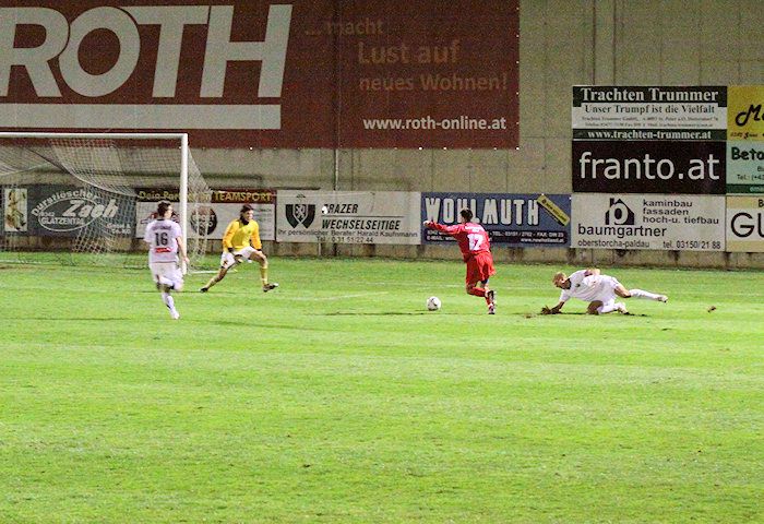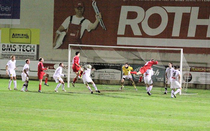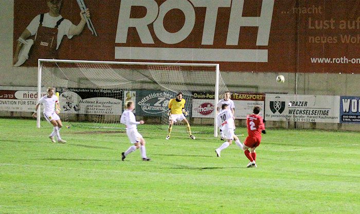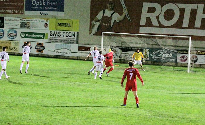 Die Drangperiode wurde in der 79. Minute mit dem Tor zum 2:2 belohnt. Bauernhofer hob einen Freistoß von der rechten Seite in den Strafraum, Lukas Kleinhappl stieg hoch und köpfelte zum verdienten Ausgleich ein.