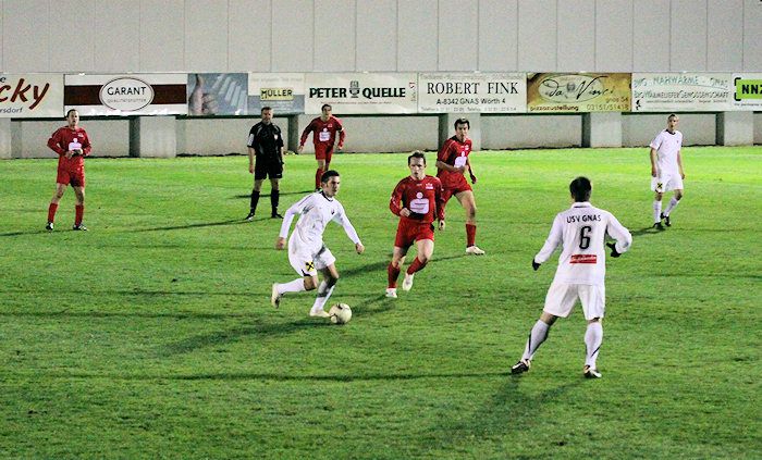 Bereits in der 1. Minute fing Gnas-Stürmer Daniel Haas einen Abschlag vom gegnerischen Torhüter ab, konnte mit seinem Schuss aber den Goalie nicht bezwingen. Nach schönem Zuspiel von Daniel Haas vergab Mittelfeldspieler Benjamin Puntigam, er traf das Tor nicht (8.).