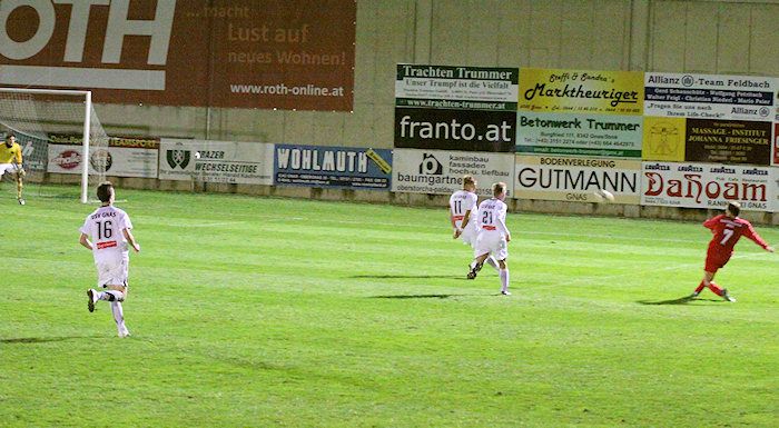 Eine weitere gut Chance fand Christian Schadler in der 11. Minute vor. Einen Eckball köpfelte er am Tor vorbei, nach einem Einwurf konnte Torhüter Miljkovic einen M.Schadler-Schuss parieren. Ein Kopfball von Christoph Haas fiel in der 15. Minute zu schwach aus, sodass der Tormann keine Probleme hatte.