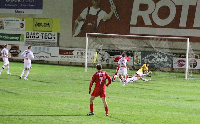 Glück für die Gnaser in der 81. Minute. Kramberger stürmt in den Strafraum...