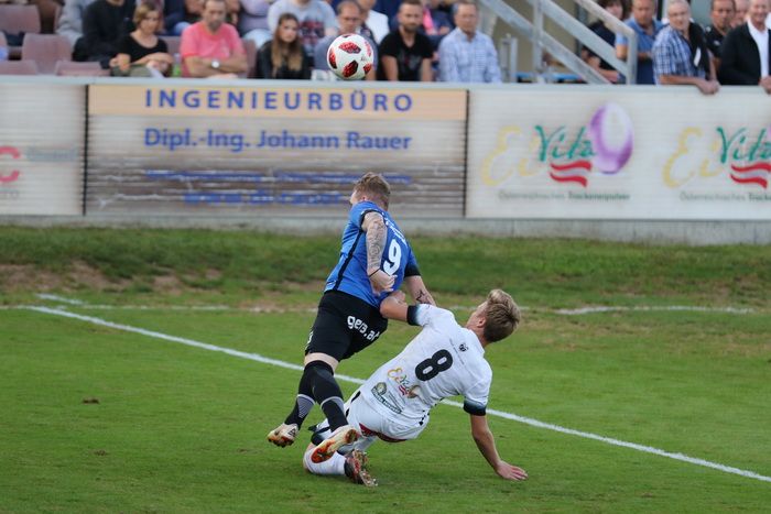 Bei diesem Zweikampf verletzte sich Philipp Scheucher (Nr. 8) und musste wenig später den Platz verlassen.