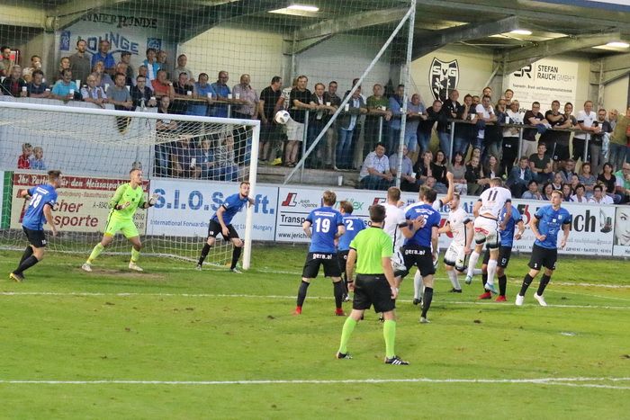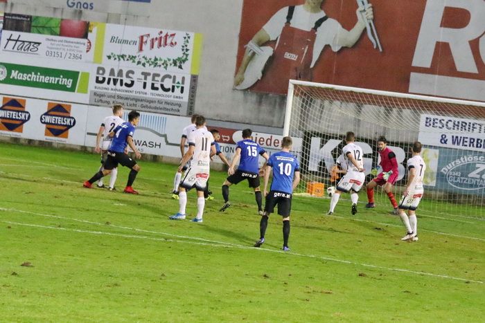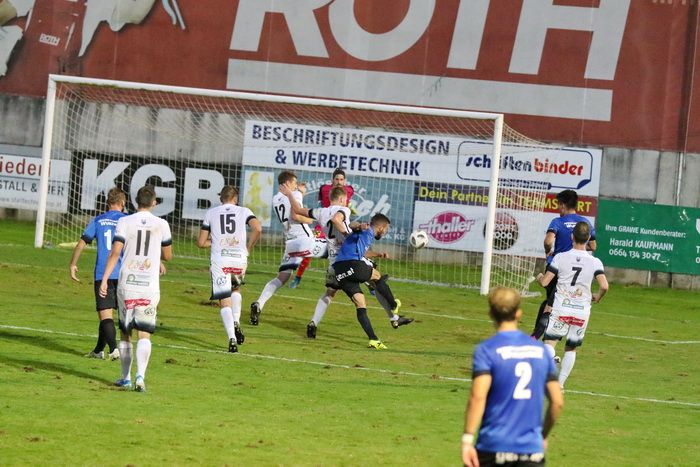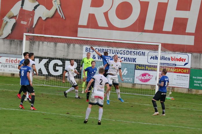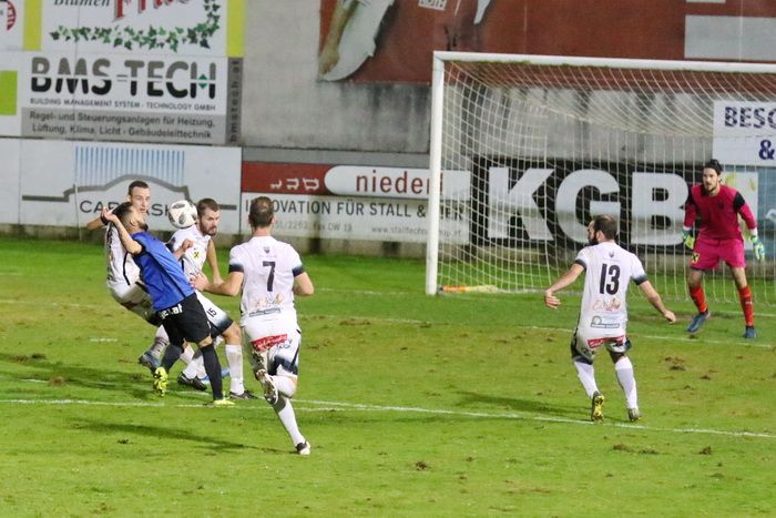 Einen Eckball köpft David Friedl (Nr. 11) knapp über die Querlatte (58.).