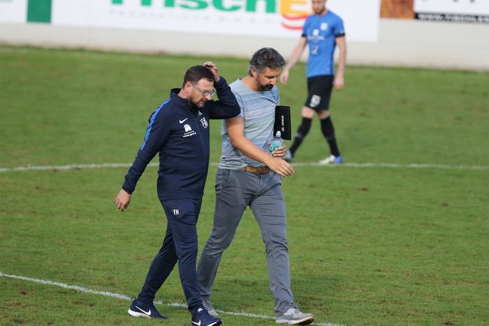 Mettersdorf-Trainer Christian Zach und der sportl. Leiter, Thomas Hack auf dem Weg zur Betreuerbank.