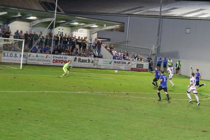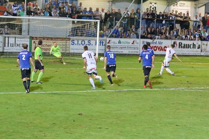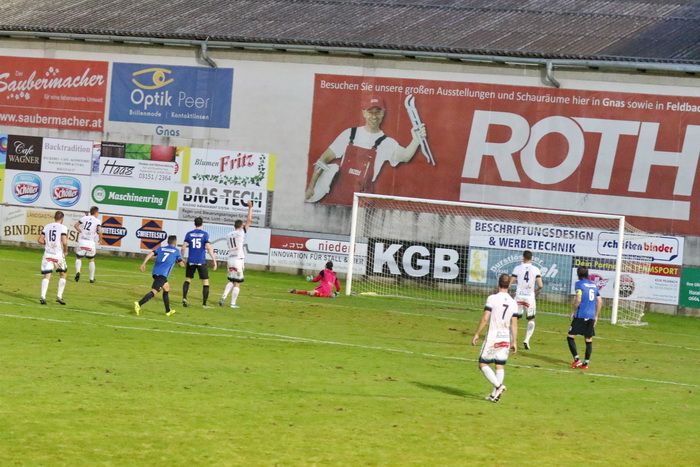 ...der Ball zischt unhaltbar ins linke Kreuzeck - 1:0 für Gnas (16.)....