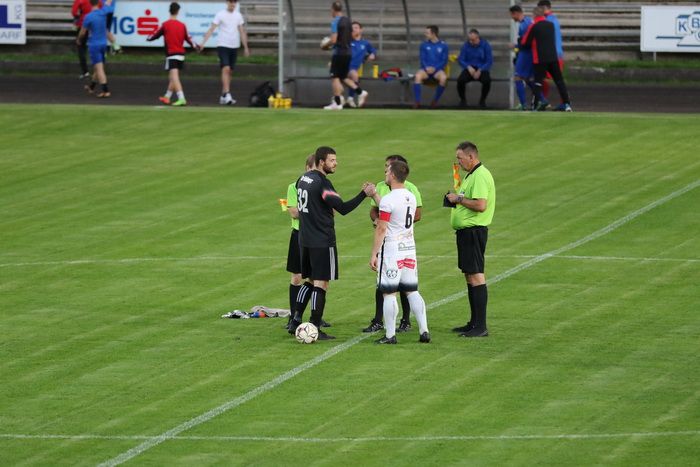 Handschlag zwischen den Kapitänen Gröblinger und M. Schadler.