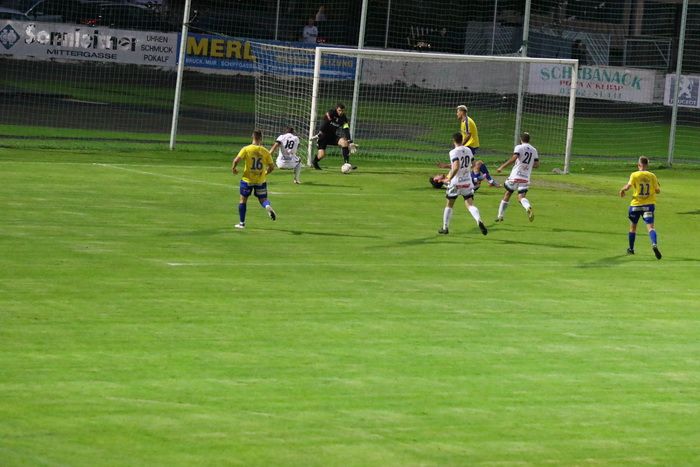 Erste Chance für die Gnaser. Klenner wird bei der Schussabgabe bedrängt, der Tormann hält.