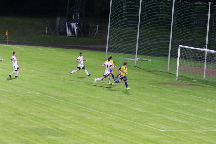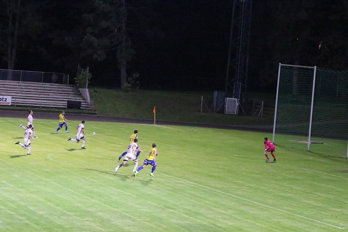 In der 26. Minute kamen die Gnaser über die linke Seite. Raphael Kniewallner passte scharf zur Mitte, Heiko Wohlmuth, bedrängt von einem Gegenspieler, kam zwar zum Abschluss, der gegnerische Torhüter konnte erst einmal abwehren, dann gab es ein Gestocher im Strafraum, letztlich wurde der Schussversuch von Daniel Zimmermann geblockt und der Ball landete in den Händen des Torhüters.