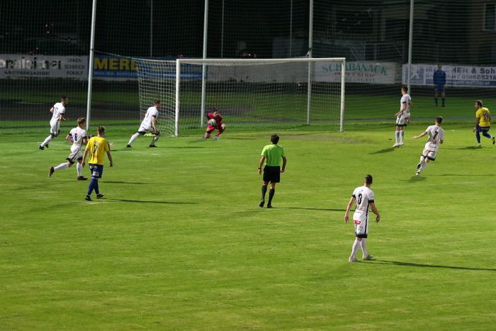 Rund 250 Zuseher kamen bei schönem Spätsommer-Abend ins Murinselsatdion und sahen in der ersten Halbzeit ein abwechslungsreiches Spiel mit leichten Vorteilen für die Hausherren. In der Anfangsphase waren die Gnaser am Drücker und kamen durch Stefan Klenner zur ersten Möglichkeit. Torhüter Gröblinger konnte den geblockten Schuss ohne Mühe halten.