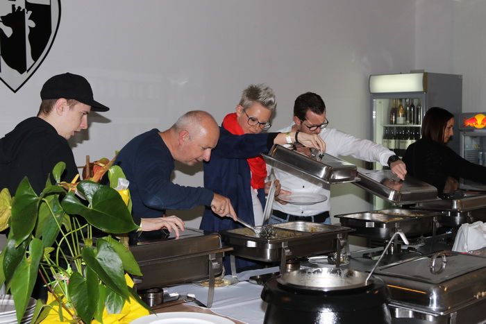 Gerhard Gregorec von der Firma AVBG Anlagen und Verteilerbau, aus Thien, mit dem Ehrenanstoß.