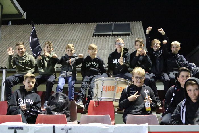 Die jungen Gnaser Fans mit Trommel und Fahne.