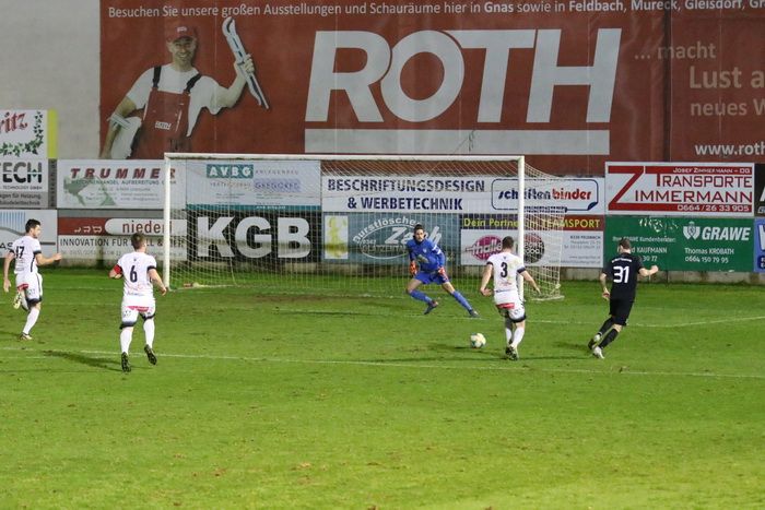 In der 93. Minute gibt es noch eine Chance für die Gnaser, doch Daniel Luttenberger-Haas kommt nicht mehr richtig ans Leder.