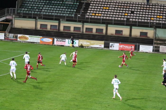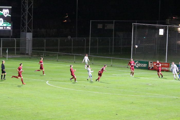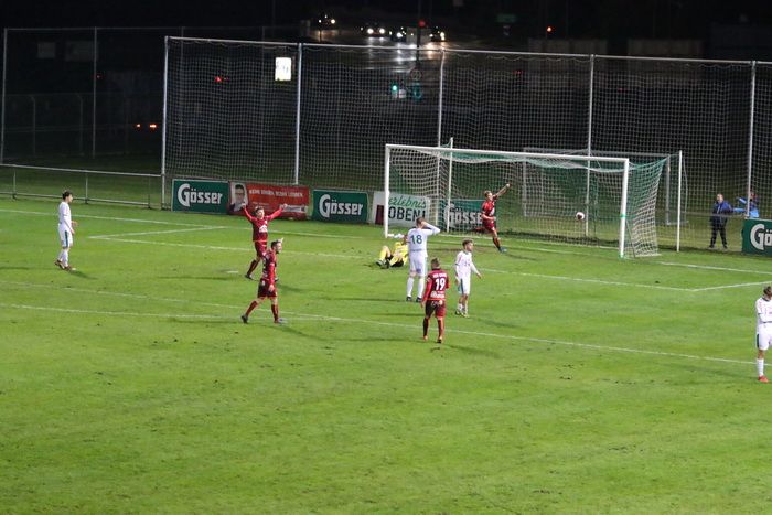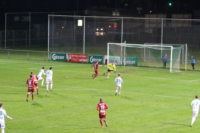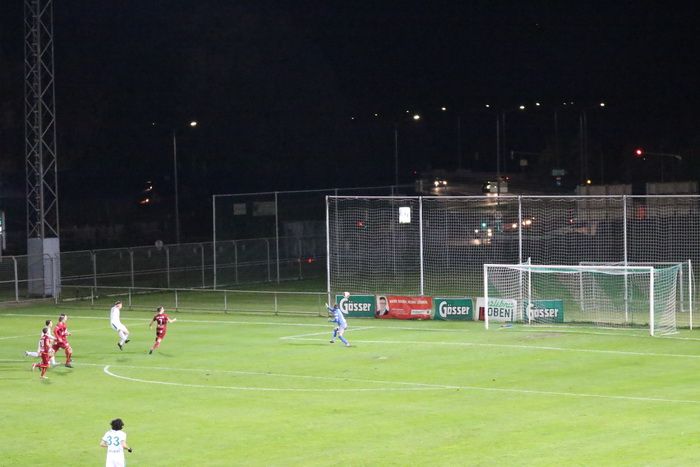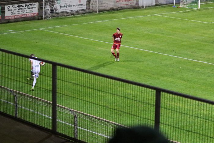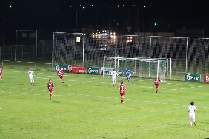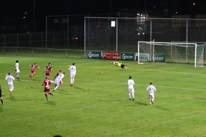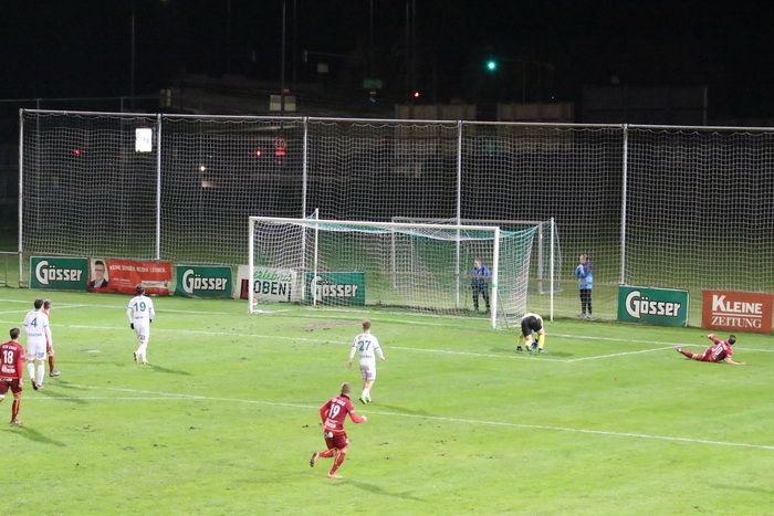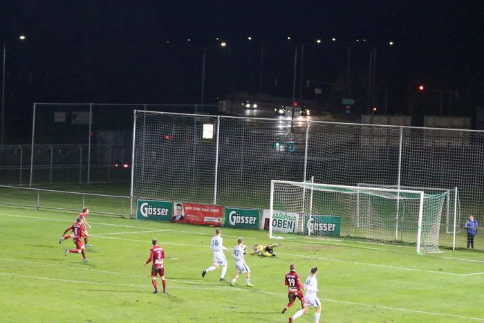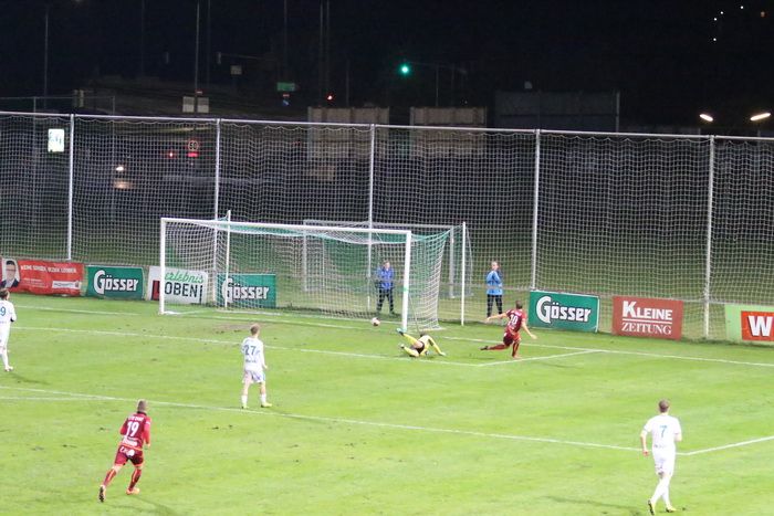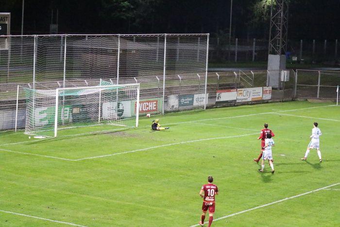Die Kovacevic-Elf konnte aber in der 13. Minute durch Mittelfeldspieler Philipp Scheucher mit 1:0 in Führung gehen. Zuvor scheiterte Kapitän Matthias Schadler mit einem Strafstoß (nach Handspiel) an Torhüter Admir Peckovic, der den Ball zwar aus der Ecke holte, aber nicht bändigen konnte. Scheucher war im Nachschuss erfolgreich.
