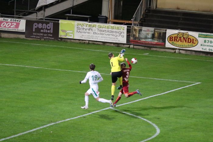 ...Matthias Schadler scheitert an der Abwehr von Torhüter Admir Peckovic...