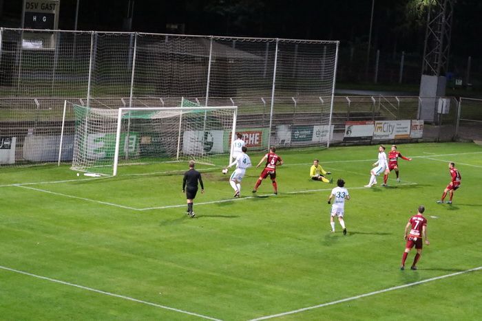 DSV-Goalie Admir Peckovic fängt einen Kopfball von Raphael Kniewallner ab (9.).