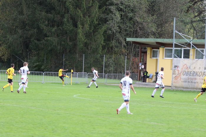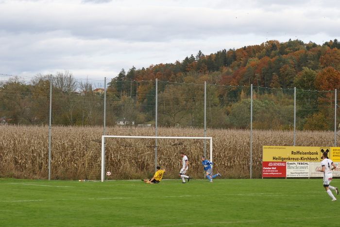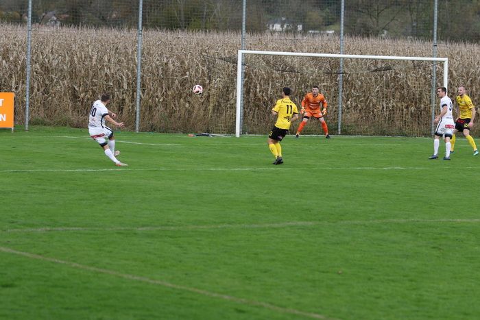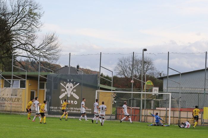 Nach Flanke von Patrick Unterkircher trifft Johannes Driesner (rechts) nur das Außennetz (76.).