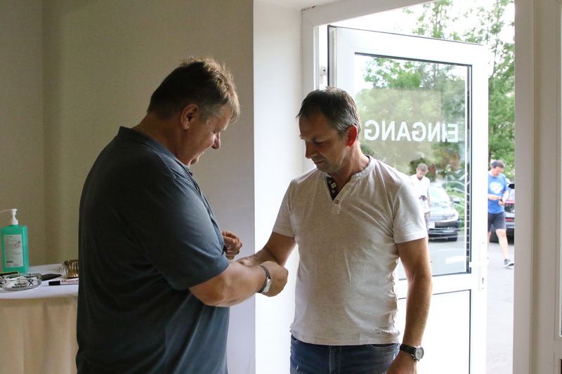 Ein Armband für den VIP-Gast vom VIP-Chef Franz Sägner.