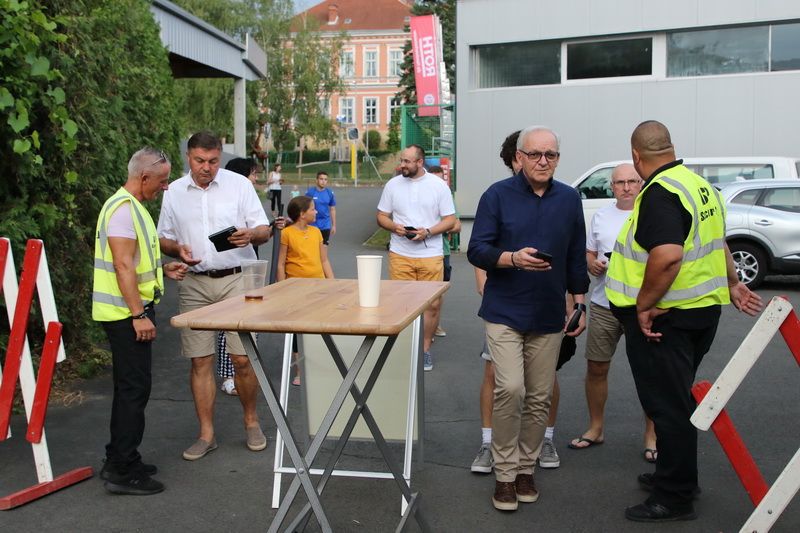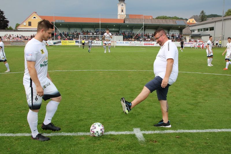 Der Matchballsponsor, SPÖ-Gemeinderat Mario Gangl (rechts) beim Ehrenanstoß.