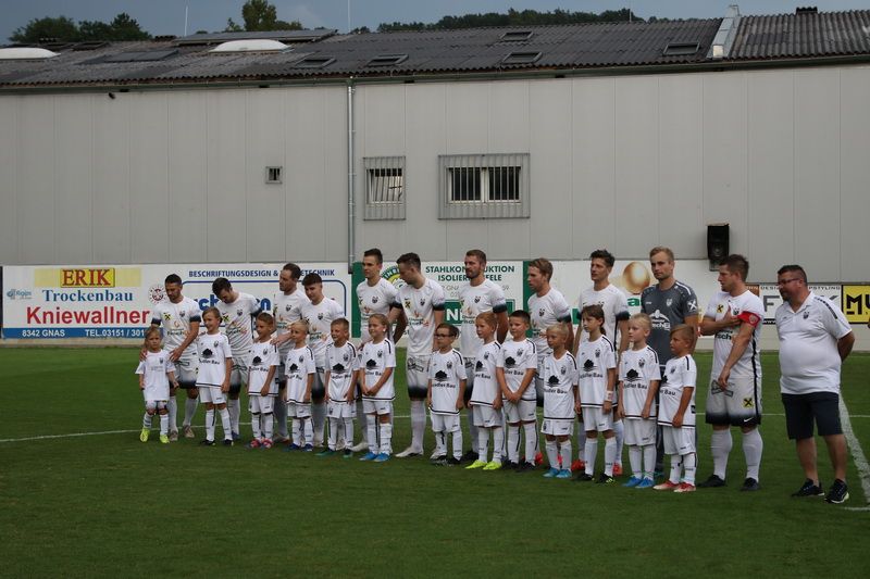 Die jungen Akteure der Gnaser U8, U9 und U10 stehen vor den Gnaser Spielern....