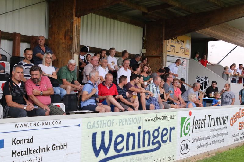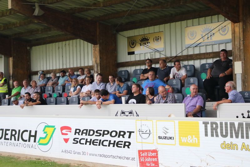 Rund 350 Zuseher kamen ins Stadion und wollten wieder Fußballathmosphäre erleben. Darunter auch der Gnaser Bürgermeister Gerhard Meixner, zahlreiche Gemeinderäte und der neue Gnaser Kaplan Mag. Dominik Johannes Wagner.